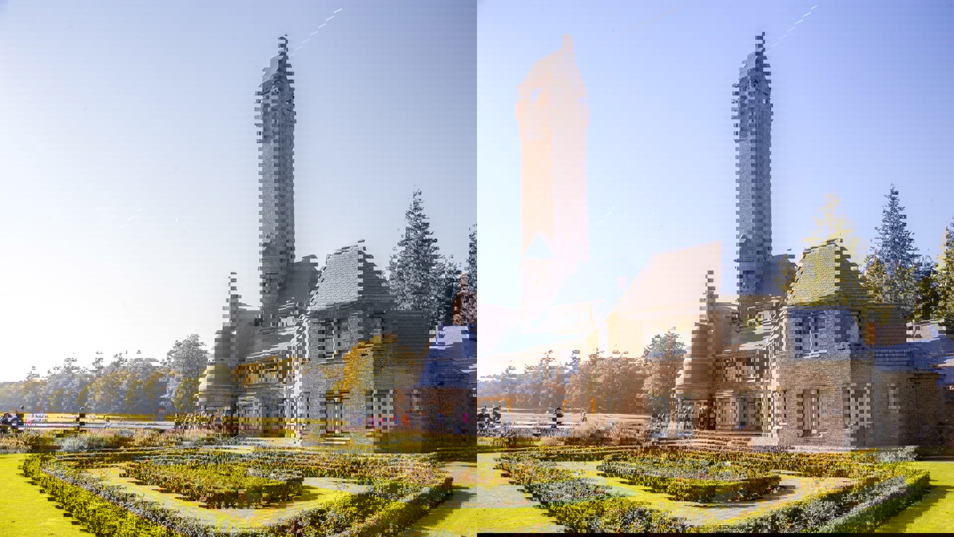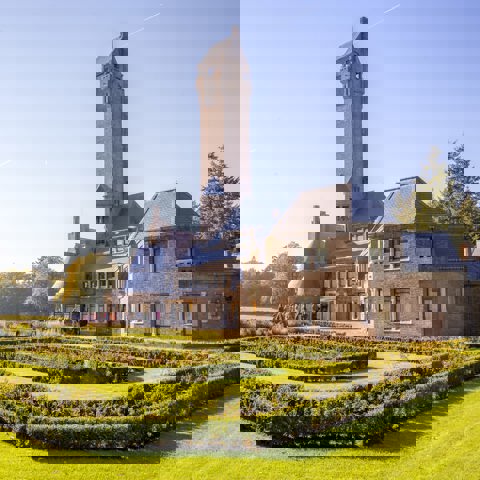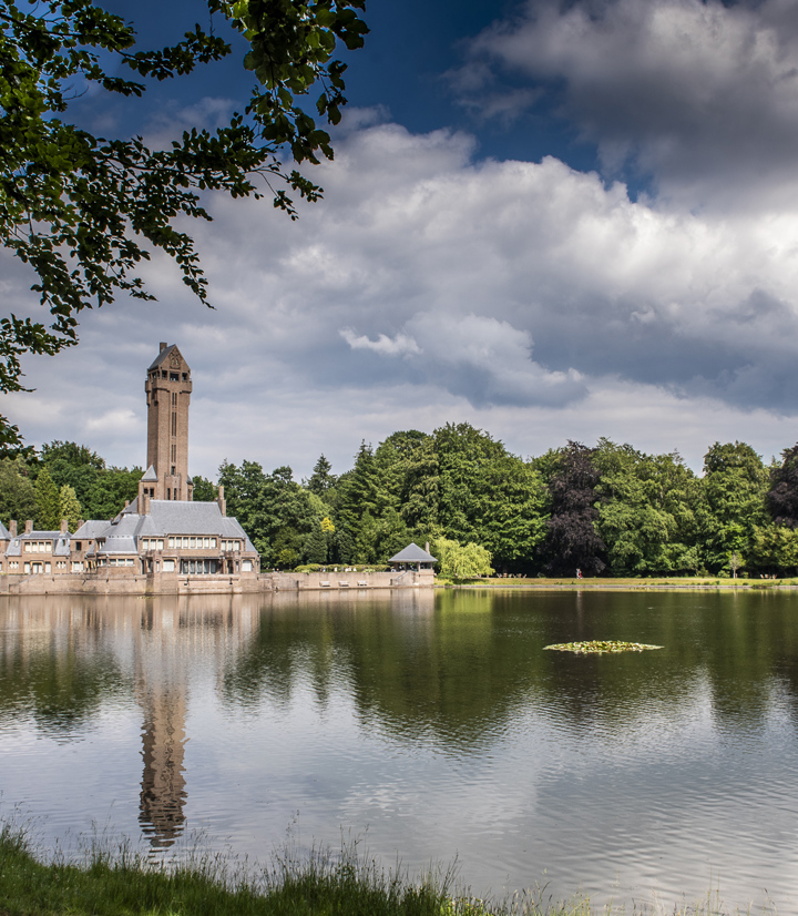 De karakteristieke toren van het Jachthuis past niet bij het genre van het Engelse Country House. Het is vooral een kenmerk van veel van Berlages gebouwen. De toren hoort ook bij de wens van het echtpaar Kröller-Müller om een weids uitzicht over de omgeving te hebben.