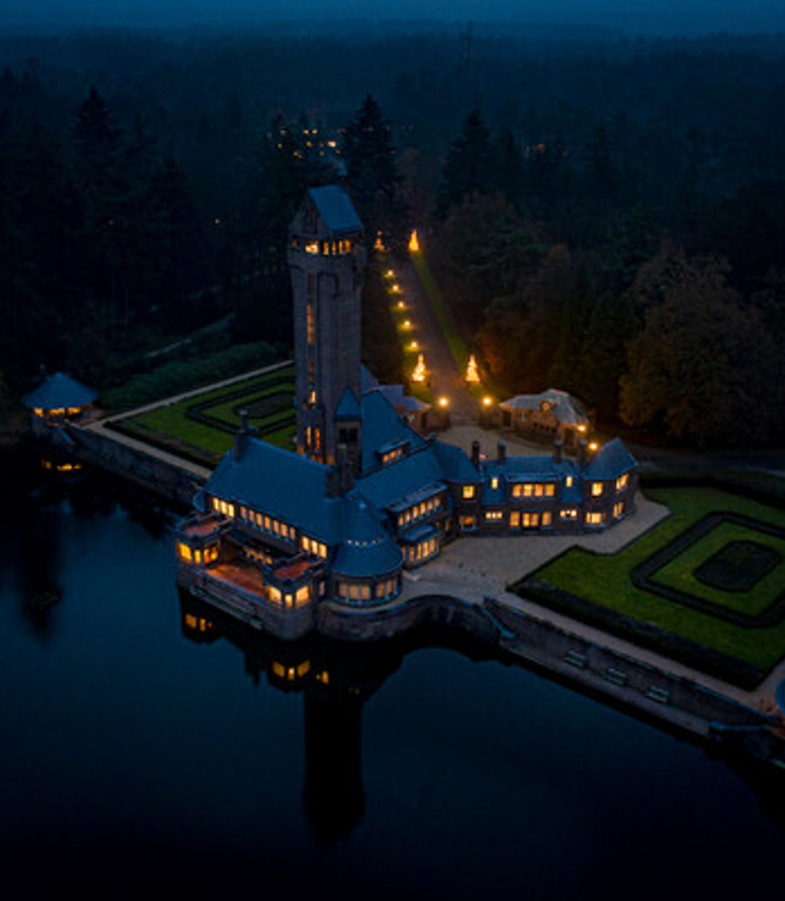 In de donkere dagen rondom kerst gaan in het huis de lichten aan en toont dit icoon van de Nederlandse architectuur zijn grandeur bij avondschemering. Vanuit alle hoeken heeft het kunstwerk van Berlage iets unieks. Dit wordt door het warme licht nog meer benadrukt.
