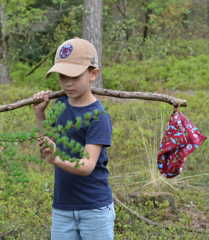 De leerlingen maken een eigen knapzak door een lapje stof uit te zoeken en een zelf te zoeken naar een geschikte tak. Vervolgens gaan ze op pad in groepsverband. Per groep is er één rugzak met veldmaterialen die uitgeleend wordt. Onderweg voeren ze opdrachten uit, zoals het meten van een hoge boom en het maken van een weerbericht. Mooie vondsten verzamelen ze in hun knapzak als souvenir. De knapzak mogen de leerlingen mee naar huis nemen.
